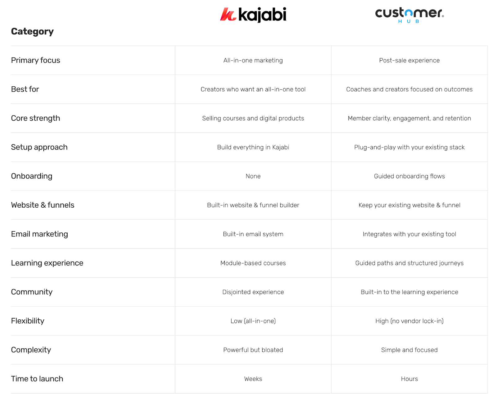 If you are specifically comparing Kajabi and CustomerHub side by side, see our detailed breakdown here: Kajabi Alternative: Why CustomerHub Is the Smarter Choice.