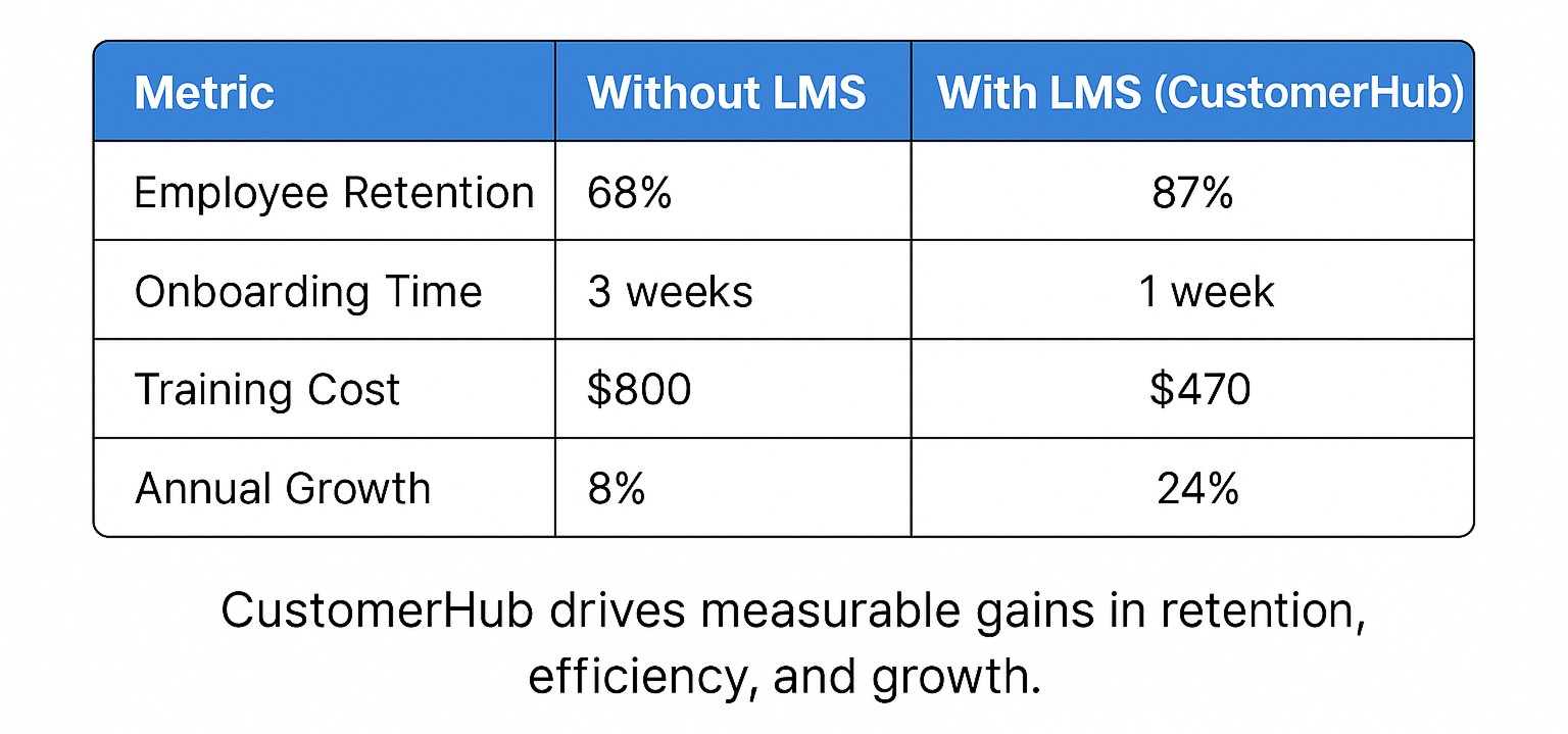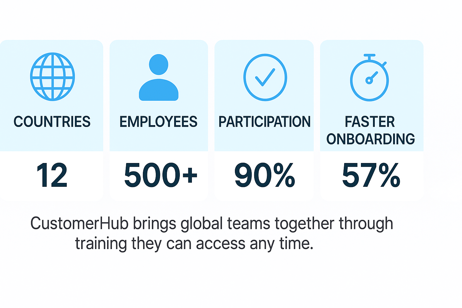 One company trained over 500 employees in 12 countries through CustomerHub. Participation stayed at 90%, and onboarding time dropped from 21 days to 9.