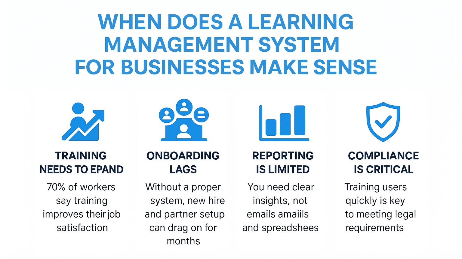 A learning management system for businesses keeps learning consistent across offices and remote teams.