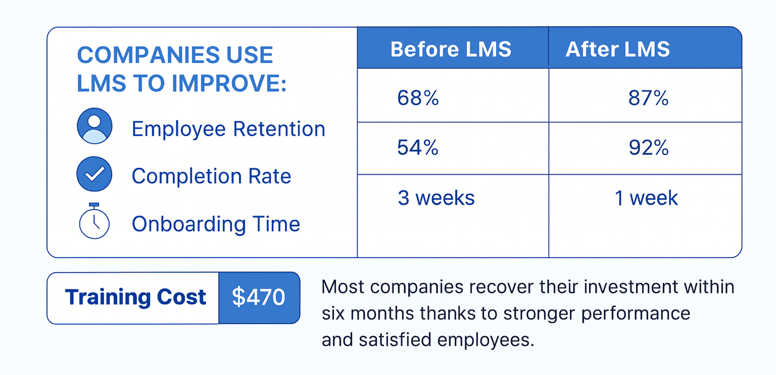 Managers and HR leaders spend many hours each week checking training lists, reminding people, and updating spreadsheets. An LMS automates most of that.